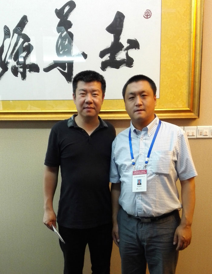 京銳景泰藍(lán)總經(jīng)理徐國偉和玉雕大師張鐵成合影留念
