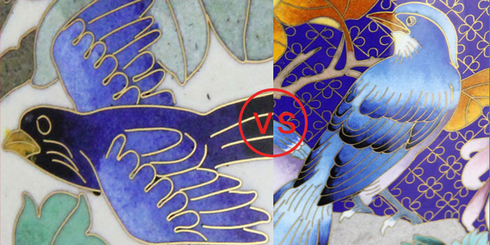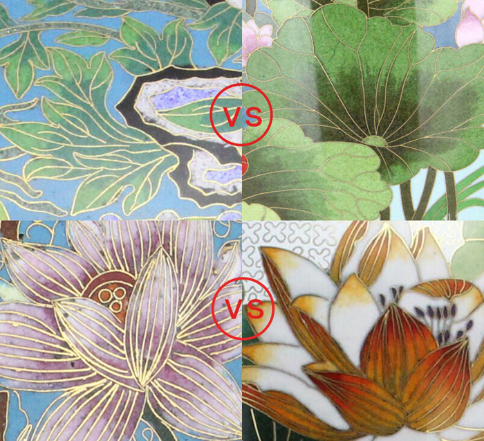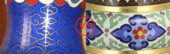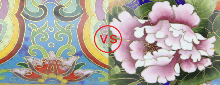 2、過渡行業(yè)劣質(zhì)景泰藍-過渡(左)?????????? 京銳景泰藍作品-過渡(右)