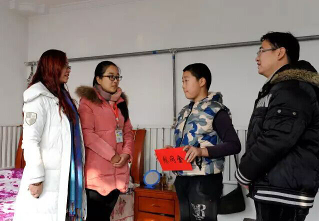 京銳景泰藍(lán)總經(jīng)理徐國(guó)偉為貧困鄉(xiāng)親送上慰問(wèn)金(4)? ? 為了盡快將愛心善款送到貧困群眾手中,京東新城網(wǎng)愛心聯(lián)盟10余位愛心商家和愛心人士代表組成愛心小組,分別深入受助群眾的家中,送上了愛心善款以及深深的祝福。每到一處,現(xiàn)場(chǎng)都激蕩起一陣陣愛的漣漪,更是撒播下了綿延不絕的愛的種子?!爸x謝這么多好心的叔叔、阿姨們對(duì)我的幫助”東廠村的賈云鵬同學(xué)接過(guò)愛心善款后淚水奪眶而出,深深地向在場(chǎng)的愛心商家和愛心人士鞠躬致謝,表示一定將這份鼓勵(lì)與期望轉(zhuǎn)化為動(dòng)力,好好學(xué)習(xí),將來(lái)做一個(gè)對(duì)社會(huì)有用的人,幫助更多需要幫助的人。