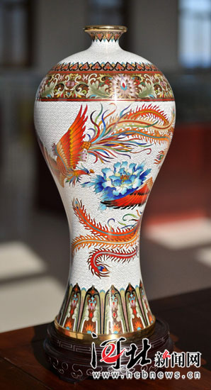 ? ? 2013年6月,韓國總統(tǒng)樸槿惠訪華期間,由中國工藝美術大師、“景泰藍技藝”代表性傳承人張同祿設計、大廠出品的景泰藍作品《喜鳳瓶》被作為國禮贈送。