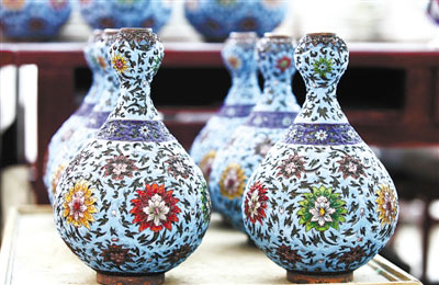景泰藍(lán)是火、釉料、銅三者在火中多次燃燒而成