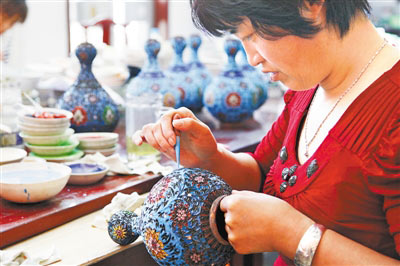 ? ? 作為中國古代藝術(shù)品中為數(shù)不多的“皇家獨(dú)享”藝術(shù),景泰藍(lán)復(fù)雜的制作技藝,在當(dāng)時(shí)也只有一些宮廷老藝人才能掌握。多少年來,這門技藝的傳承者隨著景泰藍(lán)藝術(shù)的興衰而沉沉浮浮,而徐國偉卻是這為數(shù)不多的堅(jiān)守著皇家技藝的“點(diǎn)藍(lán)”人之一。