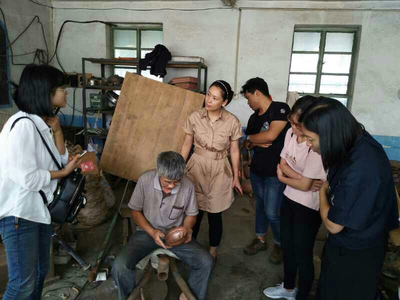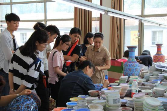 ? ? 其后,在副總經(jīng)理劉芳的陪同下,各位師生參觀了景泰藍的生產(chǎn)車間,從制作的第一道工序一直參觀到最后一道工序,劉總的詳細講解配合著員工們的操作,讓眾位師生對于景泰藍有了更加真實的認識,大家都為景泰藍這種純手工制作、精湛且復(fù)雜的技藝感到深深的震撼。