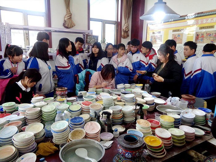 眾多師生到達(dá)京銳景泰藍(lán)皇家文化體驗(yàn)中心