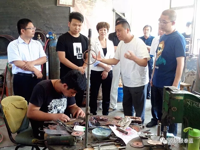 京銳景泰藍總經(jīng)理徐國偉為各位領(lǐng)導(dǎo)講解景泰藍制作工藝——制胎