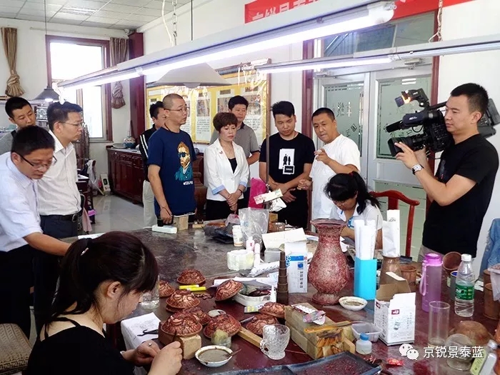 最后,京銳景泰藍總經(jīng)理徐國偉引導(dǎo)各方領(lǐng)導(dǎo)參觀公司車間,詳細講解了景泰藍整個制作過程。