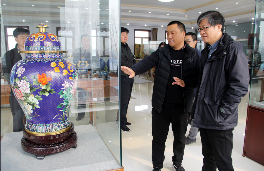 ? ? 2019年3月3日,在這陽光明媚,春意盎然的日子,河北京銳景泰藍(lán)有限公司迎來了 清華大學(xué)美術(shù)學(xué)院黨委書記馬賽,清華大學(xué)美術(shù)學(xué)院副院長(zhǎng)趙超, 清華大學(xué)美術(shù)學(xué)院院務(wù)辦公室主任任茜,清華大學(xué)美術(shù)學(xué)院工藝美術(shù)系黨支部書記王曉昕,清華大學(xué)美術(shù)學(xué)院培訓(xùn)中心工藝美術(shù)項(xiàng)目負(fù)責(zé)人馬雷,清華大學(xué)美術(shù)學(xué)院培訓(xùn)中心干事陳妍孜由河北省工美協(xié)會(huì)會(huì)長(zhǎng)李平思, 廊坊市工美協(xié)會(huì)會(huì)長(zhǎng)陳宏娜,大廠縣政府縣長(zhǎng)劉寶旺等領(lǐng)導(dǎo)陪同考察,京銳景泰藍(lán)總經(jīng)理接待了本次領(lǐng)導(dǎo)考察團(tuán)。