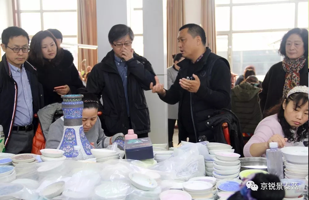 ? ? 京銳景泰藍(lán)總經(jīng)理陪同考察團(tuán)走進(jìn)景泰藍(lán)加工車間,為考察團(tuán)詳細(xì)講解了景泰藍(lán)制作的每一道工序,考察團(tuán)領(lǐng)導(dǎo)們給予了景泰藍(lán)匠人們極高的評(píng)價(jià)和肯定。
