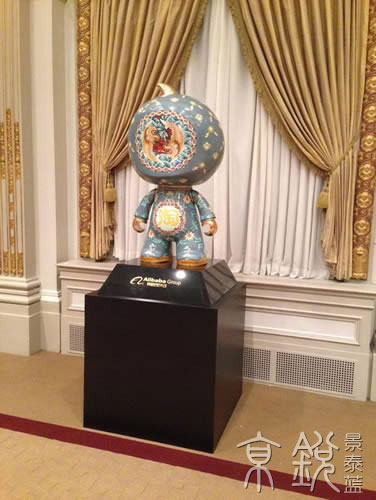 景泰藍(lán)淘公仔 ????在敲響紐交所開市鐘前,阿里巴巴聯(lián)合創(chuàng)始人兼董事長(zhǎng)馬云會(huì)在早餐會(huì)上將這份IPO禮物“景泰藍(lán)淘公仔”交給交易所總裁托馬斯·法雷(Thomas Farley)。