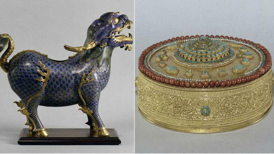 圖片說明:此次失竊的圓明園舊藏景泰藍(lán)麒麟和金曼扎