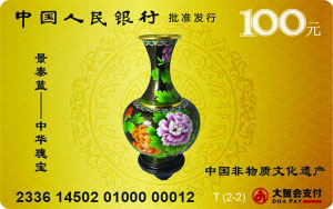 ? ?本次《景泰藍(lán)》特種藝術(shù)IC儲(chǔ)值卡的發(fā)行價(jià)值正是為了更好地傳承和發(fā)揚(yáng)中國(guó)非物質(zhì)文化遺產(chǎn)。該IC儲(chǔ)值卡以北京特級(jí)工藝大師潛心制作的景泰藍(lán)為主體,黃色背景為基底,襯以吉祥紋樣背景。這樣的設(shè)計(jì)很好地突出了景泰藍(lán)的皇家氣質(zhì),立體感極強(qiáng)。