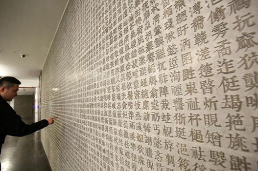 圖2:生僻字文化墻,鐫刻著選自《康熙字典》的660個(gè)漢字生僻字