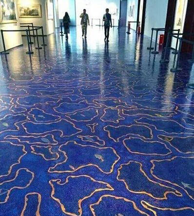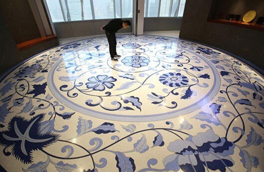 圖1:青花水磨石地板體現(xiàn)了現(xiàn)代工匠的專注與細(xì)致