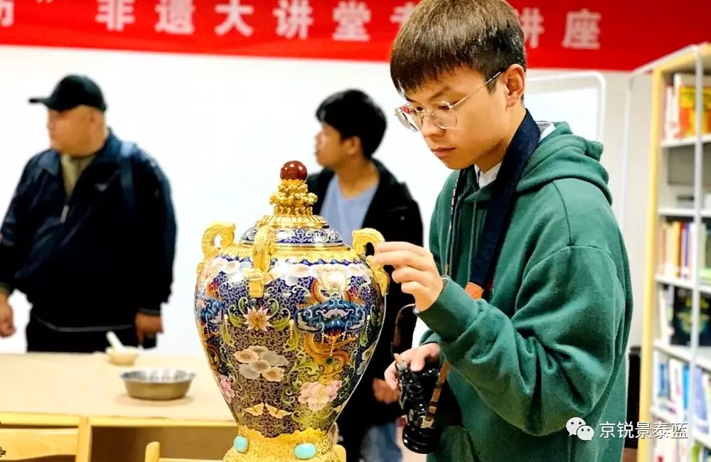 ? ? 景泰藍(lán)釉料是形成景泰藍(lán)絢麗色彩的唯一材料,是它賦予了景泰藍(lán)靚麗鮮艷的色澤。其色彩的種類、光澤度、純凈度等是決定景泰藍(lán)藝術(shù)效果的關(guān)鍵成因。只有有了琺瑯釉料,景泰藍(lán)才能如此色彩斑斕,才能散發(fā)出耀人的光芒。10月13日下午,“守藝?yán)确弧狈沁z大講堂專題講座第十五講在廣陽區(qū)圖書館舉行,省級非遺項(xiàng)目琺瑯釉料燒造技藝代表性傳承人徐國偉講授“五彩斑斕的琺瑯釉料”,現(xiàn)場解惑粉狀釉料如何產(chǎn)生色彩斑斕的顏色。