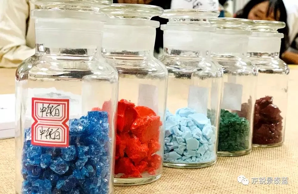 ? ? 釉料燒造起最主要基體作用的是馬牙石(石英、二氧化硅)這種材料,其他的比如說:盆硝、定粉、硼砂是起到助熔作用。紫石(我們常說的螢石—氟化鈣)在配方里起到澄清劑和乳濁劑的作用。再用金屬原料來配置顏色。如寶石藍(lán)是加入鈷的氧化物,高溫熔煉出的藍(lán)色。加入黃金可以調(diào)試出美妙的粉紅色。