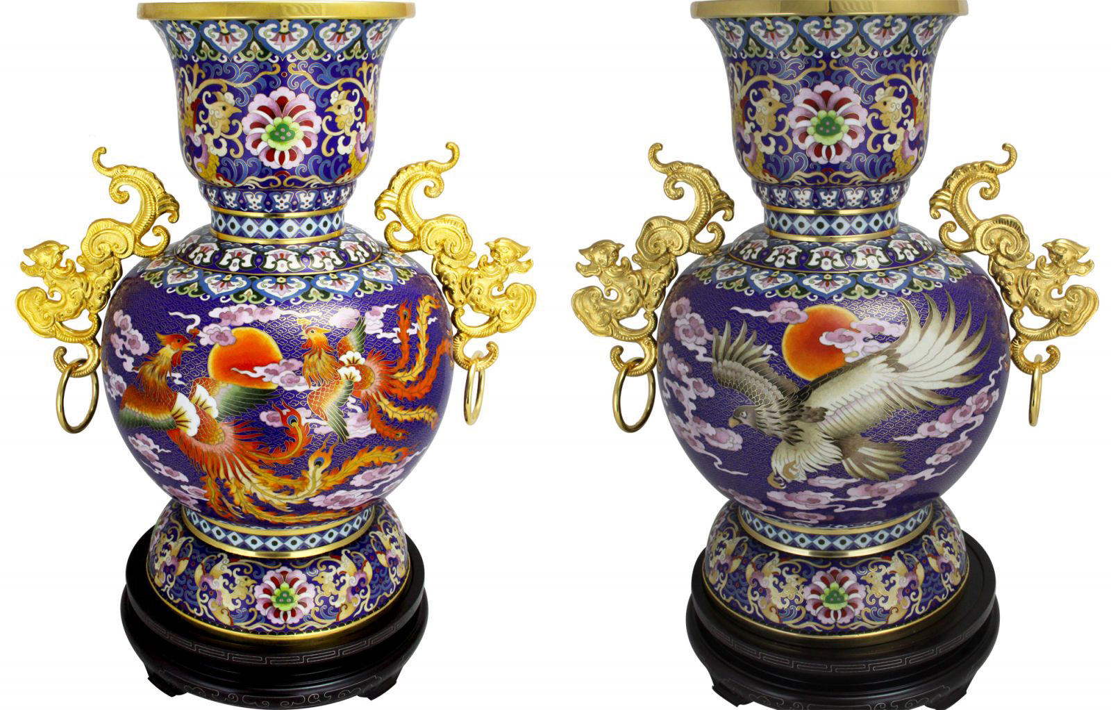 ? ? 丹鳳朝陽瓶是由紫銅,琺瑯釉料、純金共同打造而成的藝術(shù)品,經(jīng)過八大工序,108道小工序制作而成,工藝精益求精,品質(zhì)卓越。