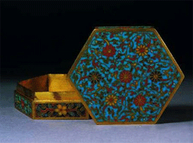 一、2002年在香港佳士得,一件明景泰御制掐絲琺瑯纏枝番蓮蓮蓬紋盒以1057.25萬元成交。