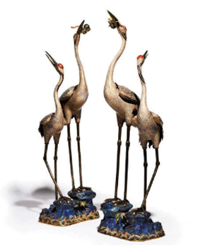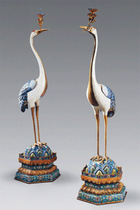十一、2010年中貿(mào)圣佳春拍,一對清乾隆銅胎掐絲琺瑯仙鶴燈盞以224萬元成交。