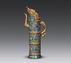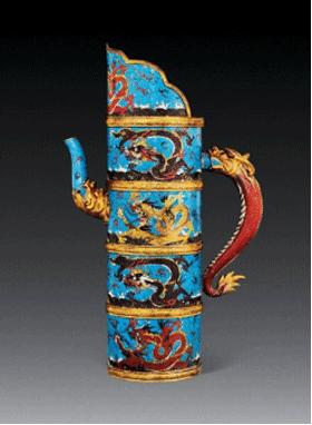 五、2007年中貿(mào)圣佳年秋拍中,一件明景泰年間景泰藍(lán)多穆壺以369.6萬元成交。