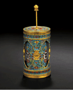 九、2010年北京長風(fēng)掐絲琺瑯專場,清乾隆掐絲琺瑯纏枝蓮紋轉(zhuǎn)經(jīng)筒以513.4萬元拍得該專場的最高價(jià)。
